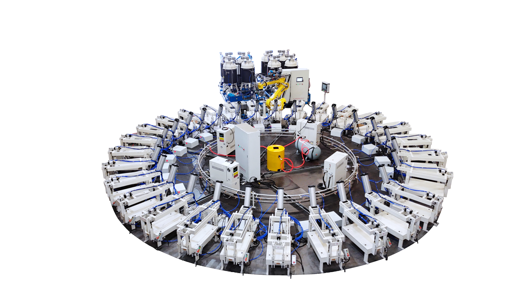 隨著社會發(fā)展,新能源汽車行業(yè)的崛起。目前汽車行業(yè)針對產(chǎn)品需求量大,為了滿足該行業(yè)的產(chǎn)品需求我們推出了高壓發(fā)泡機(jī)、低壓發(fā)泡機(jī)以及配套的自動化生產(chǎn)線,針對不同的產(chǎn)品需求,我們提供不同的解決方案。以下是部分自動化生產(chǎn)線解決方案。1. 全自動圓盤生產(chǎn)線是領(lǐng)新自研的全自…